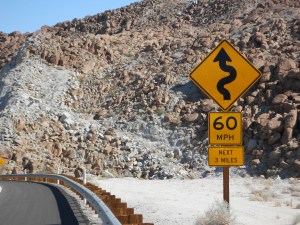 California will soon be behind us after four days of biking in cool mountain terrain, then down into desert heat.  We cycled down several thousand feet on the freeway passing plenty of warning signs.  I would have taken a photo of the sign that said “High Winds Next 12 Miles” except I was nearly blown off the freeway as I hung on for dear life as traffic whizzed by.