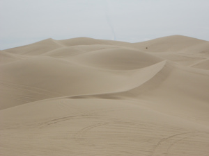 We hugged the ever-present wall (the long brown snake in the photo below) separating the US from Mexico for much of yesterday. Border Patrol SUVs passed us at break-neck speeds. Today we entered the Imperial Sand Dunes. Wild changes in topography.