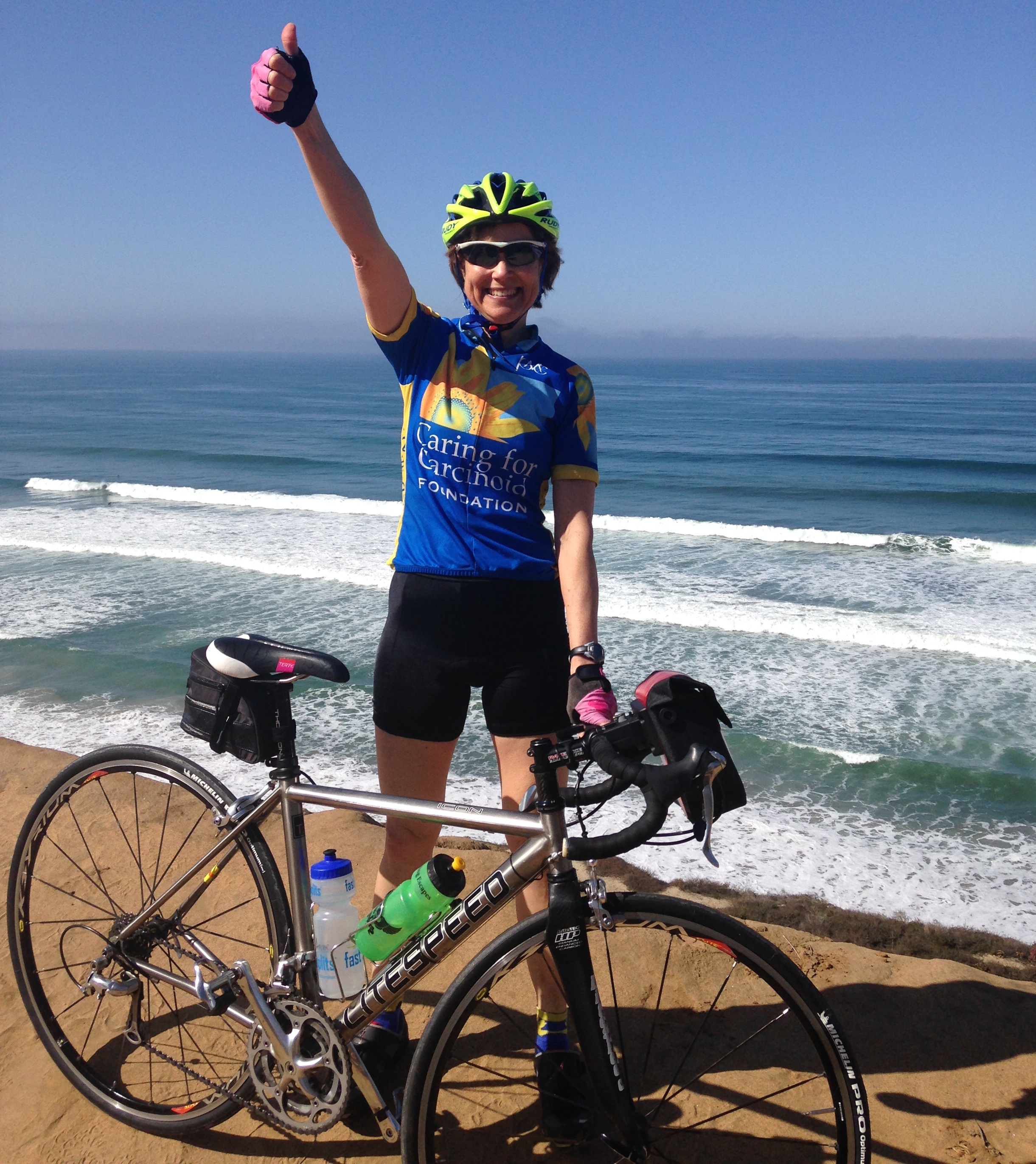 The sun is shining in La Jolla, CA.  (With 101 days running of sunny skies, my friend, Alison, just returned her rain coat with tags still on it to REI.  What’s the point of a rain coat here?! )  Alison took me to a look-out spot where I could admire the 360′ view.  As I enjoyed the rolling ocean to the west, it was nearly possible to avoid focusing on the (large) mountain range to the east . It turns out that our first day requires quite a bit of climbing to the town of Alpine.  Alpine brings thoughts of snow – the stuff I’ve just escaped from!